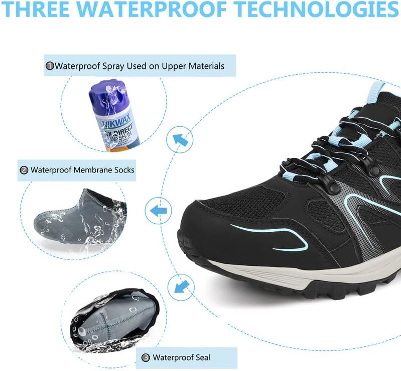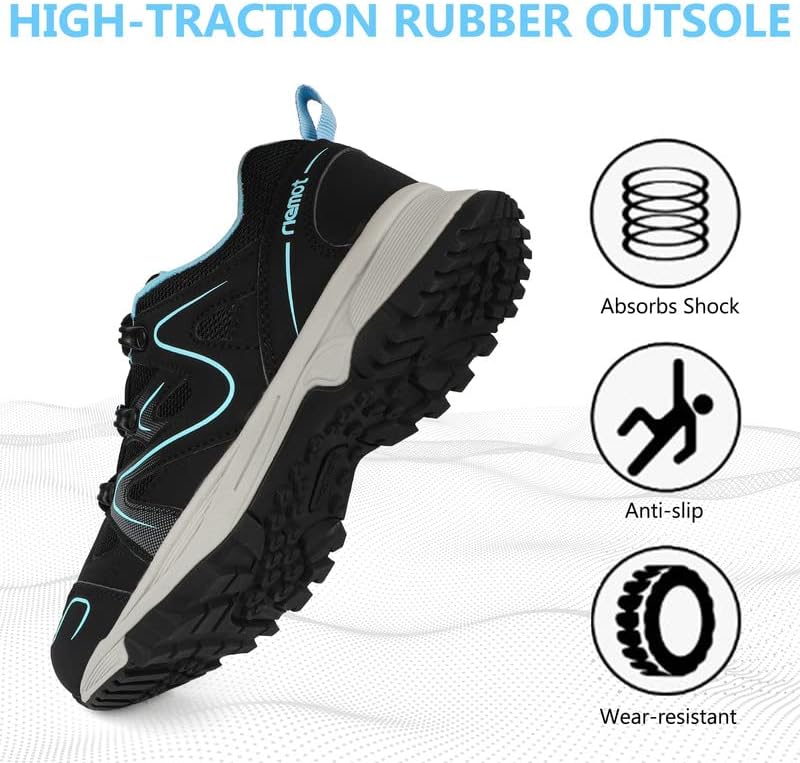 Diese leichte wanderschuhe sind wasserdicht, rutschfest,atmungsaktiv und bequem. Bewältigen Sie mühelos schwieriges Gelände und nasses Wetter, ungehindert von Regen, Schlamm und Pfützen.