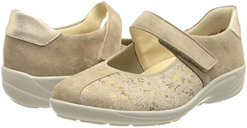 Sommerlicher Komfortballerina mit funktionaler Ristklettbandage und luftiger Perforation im Blatt. Leichte flexible und abrolldynamische Laufsohle. Weich gepolstertes Variofußbett.