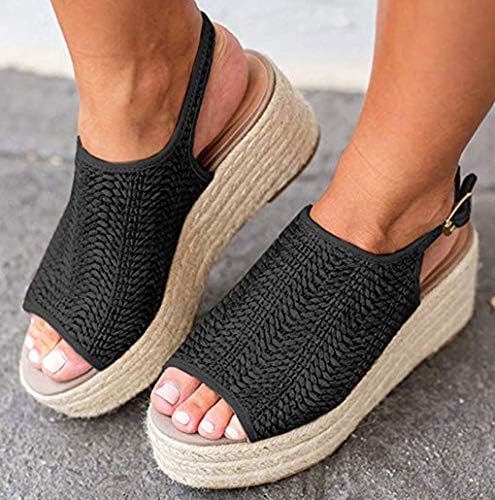 Minetom Damen Sandalen Sommer Casual Flache Keilschuhe Bequeme Peep Toe Strandurlaub Elegante geflochtene Sandalen