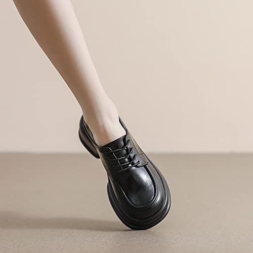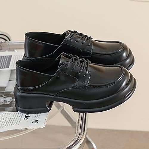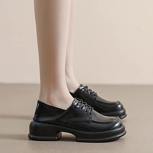 BEBLUM Blockabsatz Loafers für Damen Mary Jane Retro Britischer Stil Plattform Lolita Lederschuhe mit Runder Spitze Schnüren Slip on