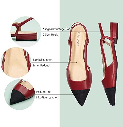 C.Paravano Slingback Flach Pumps I Slingback Pumps I Damen Slingback I Slingback Schwarz Damen I Pumps Damen I Slingback Pumps Damen I Flache Schuhe Knöchel Strap Sandalen (Größe 41, Rot)