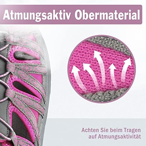 GRITION 2022 neue Bergsteiger-Zehensandalen für Damen.Der stark gewickelte Oberschuh in Kombination mit atmungsaktiven Materialien schützt Ihre Füße bei Outdoor-Aktivitäten und ist gleichzeitig atmungsaktiv und nicht stickig. Der Klettverschluss verfügt über ein verstellbares Bungee-Schnürsystem für einfaches An- und Ausziehen und passt für die meisten Fußgrößen. Die Sohle der Sandale besteht aus einer EVA-Zwischensohle in Kombination mit einer Gummilaufsohle. Es kann ein angenehmes Tragegefühl und eine gute Anti-Rutsch-Wirkung bieten.Wenn Sie es tragen, können Sie am Strand spazieren gehen, in den Bergen pendeln, auf der Straße spazieren gehen, selbst wenn Sie durch den Bach gehen und nasse Sandalen bekommen, kann es schnell trocknen, ohne sich klebrig anzufühlen.