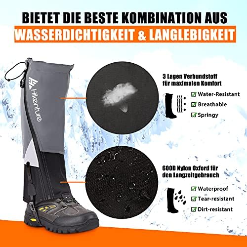 ZUVERLÄSSIGE QUALITÄT UND KUNDENSERVICE – Freude mit HIKENTURE Wandern Gamaschen sollte nicht kurz sein! Hochwertige abriebfeste Stoffe, robuste Metallbeschläge und ultrakältebeständige und strapazierfähige TPU-Spannriemen machen Deinen neuen Outdoor-Begleiter aus. Bei Problemen nur eine Email an uns, dann 100% gelöst!
