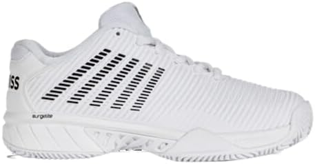 One of the best-selling Kswiss shoe, the Hypercourt Express 2, is light, comfortable, breathable, and has a generous fit, making it the ideal choice for a variety of playing styles and levels. Durawrap Flex, gives the shoe support with no break-in period, while Surgelite midsole technology provides all-day comfort. The shoe also features a deep grooved herringbone outsole for exceptional traction on clay court surfaces.