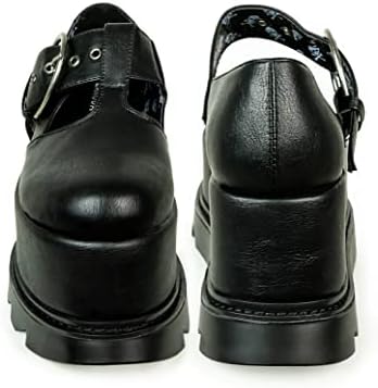 Married To The Game Chunky Platform Wedge Shoes in Black. Features include a strap across the upper with a Silver D ring buckle.