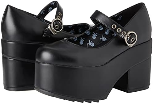 Alle unsere Produkte sind zu 100 % vegan. Secret Garden klobige Schuhe in Schwarz. Zu den Merkmalen gehören ein verstellbarer Riemen mit einer silbernen O-förmigen Schnalle und silbernen Ösen. Alles auf unserer CHUNKY-Sohle mit Haifischzähnen an der Unterseite