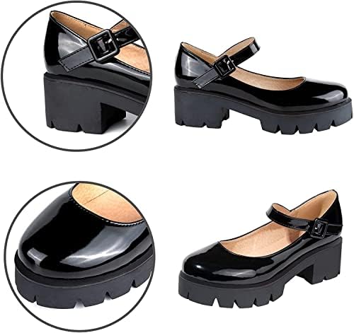 Die klobigen Absätze der Mary Jane Schuhe können Ihr Gehen sehr bequem machen, verglichen mit hochhackigen Pumps. Perfekt für Kleid, kurzes T-Shirt-Kleid, Skinny-Jeans oder Jeans, Schuluniformen, etc.