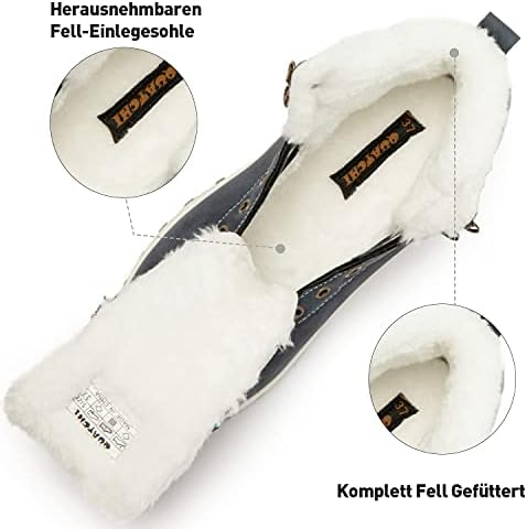 Innenmaterial: Verdicktes, umweltfreundliches Kunstfell voller Schuhe + herausnehmbare Fell-Einlegesohle. Weich und bequem, halten Sie Ihre Füße bei Nässe und Kälte lange trocken und sauber. Perfekt für Wintertage