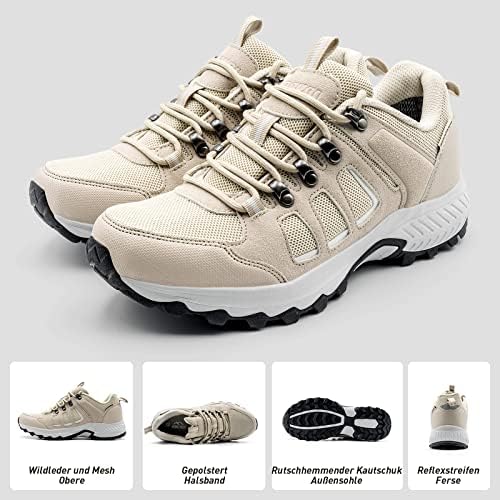 Sohle: All-Terrain-Gummi-Traktion, die Outdoor-Schuhe für Damen sind für All-Mountain-Vielseitigkeit konzipiert, und die nicht abfärbende Traktions-Gummi-Außensohle mit rutschfestem Profil bietet hohe Traktion und Griffigkeit auf schlammigen Bedingungen und felsigen Oberflächen.