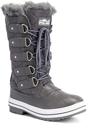 Polar Womens Snow Boot Nylon Tall Winter Snow Waterproof Warm Rain Boot – Gris/Gris – 41 – ZZCD0029