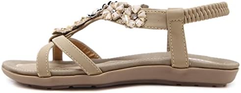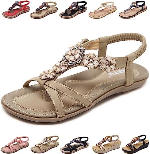 Sohle: Rutschfeste Sohle: Die Sohle ist aus rutschfestem TPR-Material, dickes und gepolstertes Fußbett mit guter Sprungkraft gibt Ihrem Fuß hervorragenden Halt und ganztägigen Komfort. Obwohl diese Sandalen flach sind, haben sie einen kleinen Keil. Sie sind gut für Frauen, die keine Absätze tragen können.