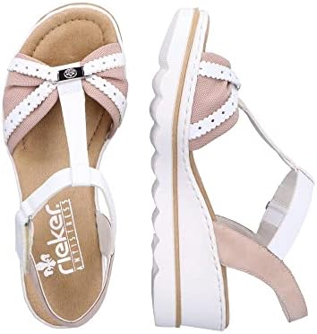 Hineinschlüpfen und wohlfühlen mit Rieker! Diese lässigen Keilsandaletten aus Kunstleder kann man sowohl im Alltag als auch in der Freizeit zu vielen Looks kombinieren! Für guten Halt sind die praktischen Sandalen mit einem schmalen Fersenriemen und einem Klettverschluss ausgestattet. Die schockabsorbierende und sehr leichte Sohle mit Keilabsatz verwöhnt die Füße zusätzlich bei jedem Schritt. 100% Lieblingsschuh-Potential!