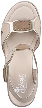 Luftig, bequem und dazu noch gut aussehen? Diese hellbeigen Riemchensandaletten aus Kunstleder von Rieker überzeugen mit echtem Komfort für die Füße. Für bestmöglichen Halt sind die praktischen Sandalen mit einem breiten Fersenriemen und einem Klettverschluss ausgestattet. Die schockabsorbierende und leichte Sohle mit Blockabsatz bietet anhaltendes Wohlgefühl ‒ auch an langen Tagen. Ein weiteres Plus ist die extra weiche Decksohle. Schöner Nebeneffekt: Man ist gleich ein paar Zentimeter größer!