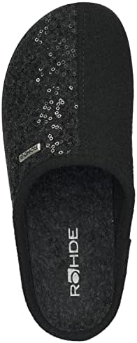 Die Damen Pantolette von Rohde aus soft Filz besticht durch ihre Pailletten Optik. Durch das herausnehmbare Wechselfußbett und durch Komfortweite G bietet der Schuh Ihnen ein optimales Tragegefühl.