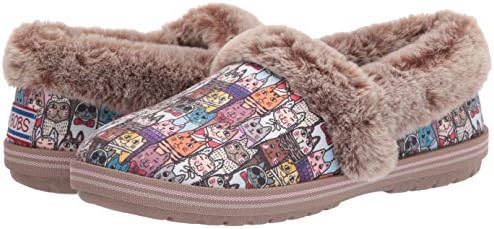 Kuschele dich in kätzchen-weichen Komfort mit dem SKECHERS BOBS for Cats Too Cozy – Chic Cat Schuh. Legerer, bequemer Slipper zum Hineinschlüpfen mit einem Obermaterial aus weicher Mikrofaser in Velouroptik mit farbenfrohem Multi Cat Design sowie Kunstpelzkragen und -futter und Memory Foam Fußbett.