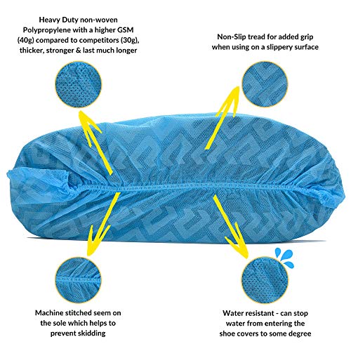 Im Vergleich zu anderen Anbietern (30 g) werden unsere Überschuhe mit einer höheren Polypropylen-Konzentration (40 g) hergestellt, was bedeutet, dass sie viel stärker sind als andere und gleichzeitig atmungsaktiv und absolut bequem für den Träger. Diese maschinell hergestellten Einweg-Schuhüberzüge schützen Ihre Teppiche und Böden bei Haushaltsprojekten, Servicearbeiten und Reparaturen zu Hause usw. Trotz ihrer Stärke sind sie leicht und effektiv, um Sie und Ihre Umgebung zu schützen. indem man sie makellos macht. weiter so und rein.